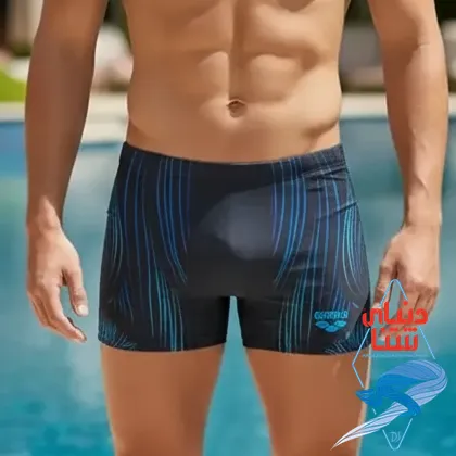 مایو مردانه Arena پادار با پاچه کوتاه، یکی از محبوب‌ترین مدل‌ها بین شناگران تمرینی است. این طراحی: