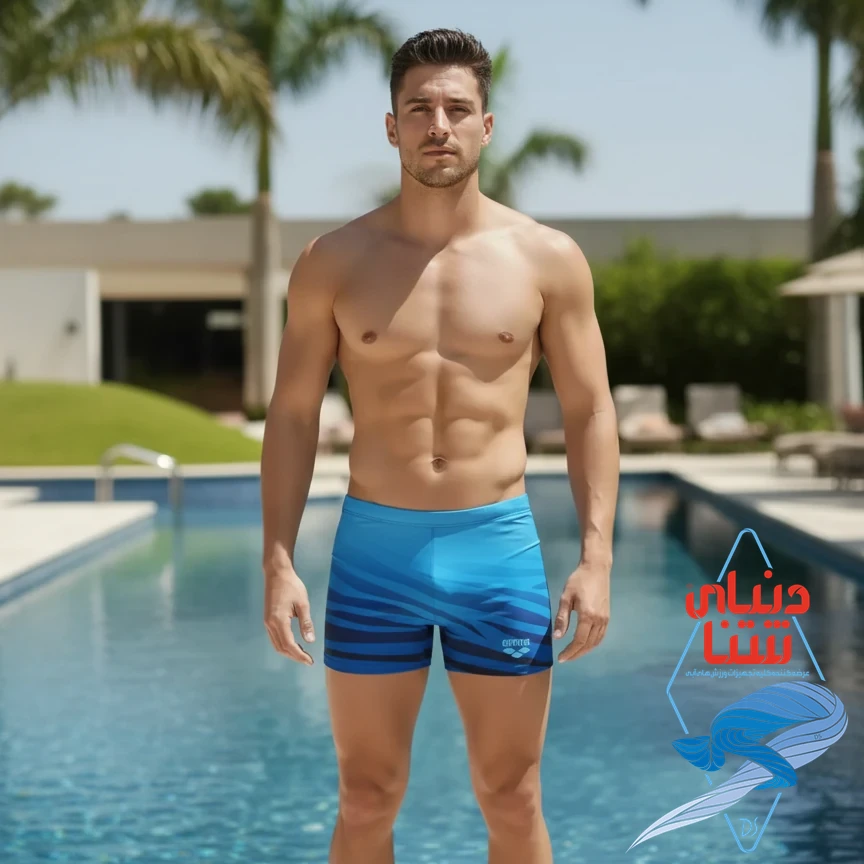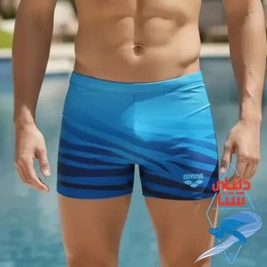 مایو مردانه Arena پادار با پاچه کوتاه، یکی از محبوب‌ترین مدل‌ها بین شناگران تمرینی است. این طراحی: